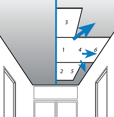 Opláštění podhledu se provádí od středu místnosti. Postup je znázorněn na obrázku níže.