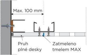Provedení pruhu z plné desky. Spára zatmelena tmelem MAX bez výztužné pásky.