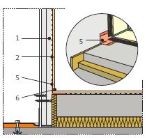 Pro snížení vlivu prostupu zvuku vedlejšími cestami je vhodné v místě napojení příčky přerušit vrstvu plovoucí podlahy. Při provedení podle detailu č. 5.10.02 je třeba dbát, aby všechny vrstvy plovoucí podlahy byly od příčky odděleny dostatečně dimenzovaným obvodovým páskem z elastického materiálu.