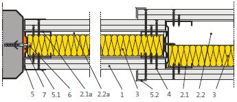 Dilataci je u konstrukcí ze sádrokartonových či sádrovláknitých desek třeba provést i při dosažení plošných či délkových limitů. V těchto případech se neočekávají výrazná vzájemná posunutí dilatačních úseků. Přerušené opláštění je možné opatřit např. krycím dilatačním profilem (viz detail).