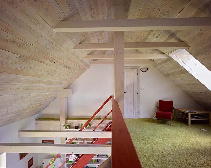 Podkroví rodinného domu Haratice, dřevostavby se sádrovláknitými deskami Rigidur