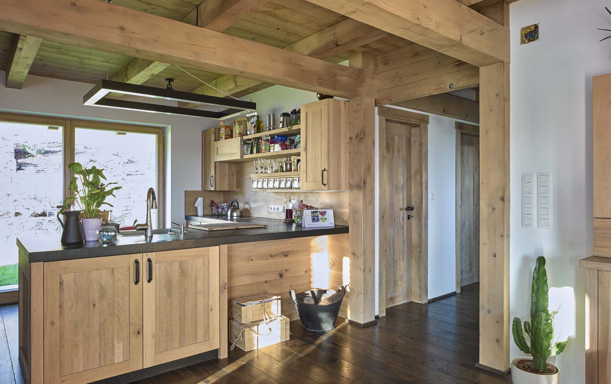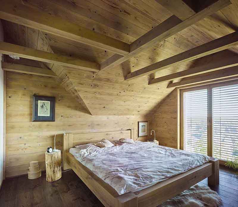 Dřevěné podkroví rodinného domu Haratice se sádrovláknitými deskami Rigidur
